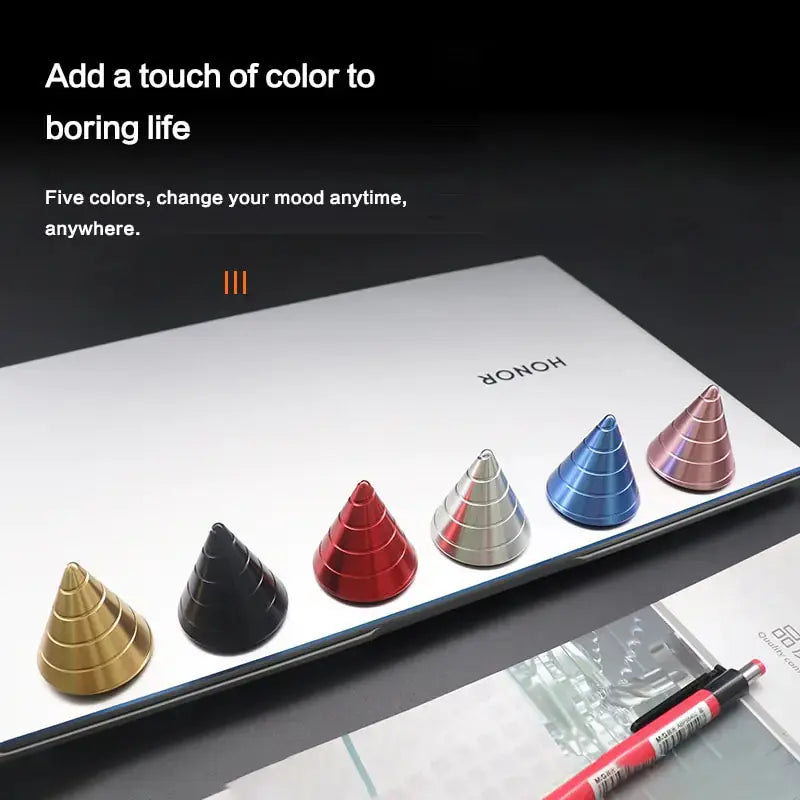 Experience a moment of relaxation and fascination with our Metal Desktop Stress Relief Cone Gyroscope. This unique office desk fidget toy offers an intriguing optical illusion and flowing motion that will captivate your senses. Crafted with high-quality metal, this finger toy is not only durable but also a stylish addition to your workspace. When you need a break from the stresses of the day, simply give the gyroscope a spin and watch as it creates a mesmerizing visual effect that calms your mind and eases tension.
